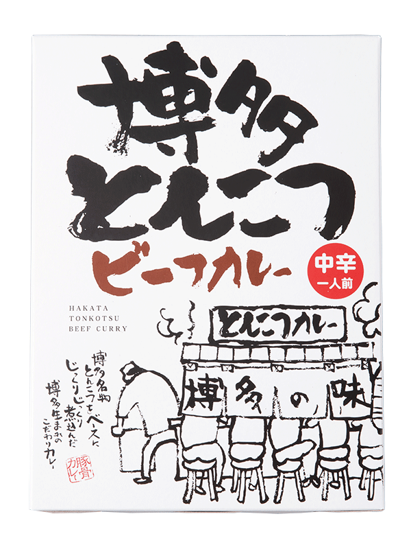 | 博多といえば屋台と言われるように、夜の町に並ぶ屋台の灯りは博多を語るに欠かせない景観の一つです。そんな屋台の味をイメージして、とんこつスープをベースに独自のカレースパイスで、手間暇かけてじっくり煮込んでつくりあげた濃厚で繊細な味わいのカレーです。 |