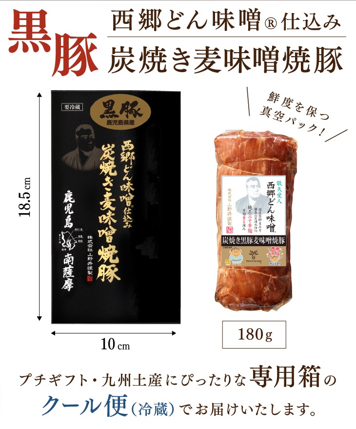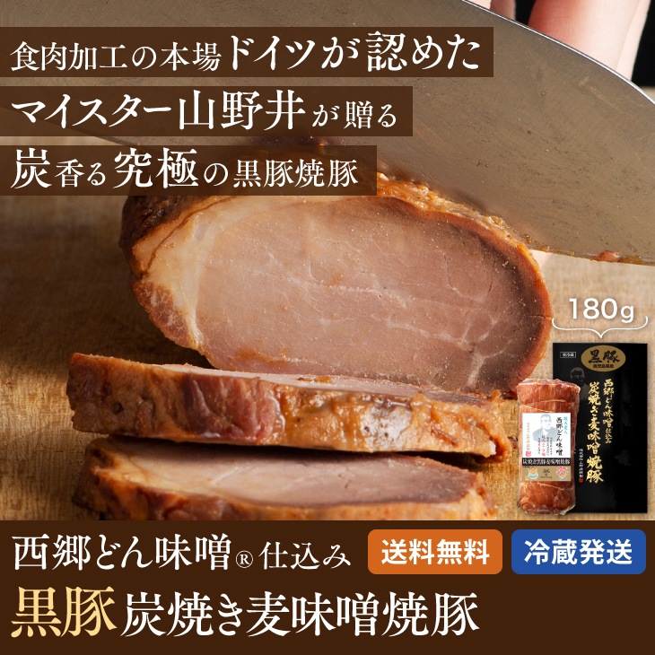 産地直送 【西郷どん味噌仕込み 黒豚 炭焼き麦味噌焼豚 180g】西郷隆盛 明治 再現 ドイツ マイスター のし化粧箱付 贈答 御歳暮
