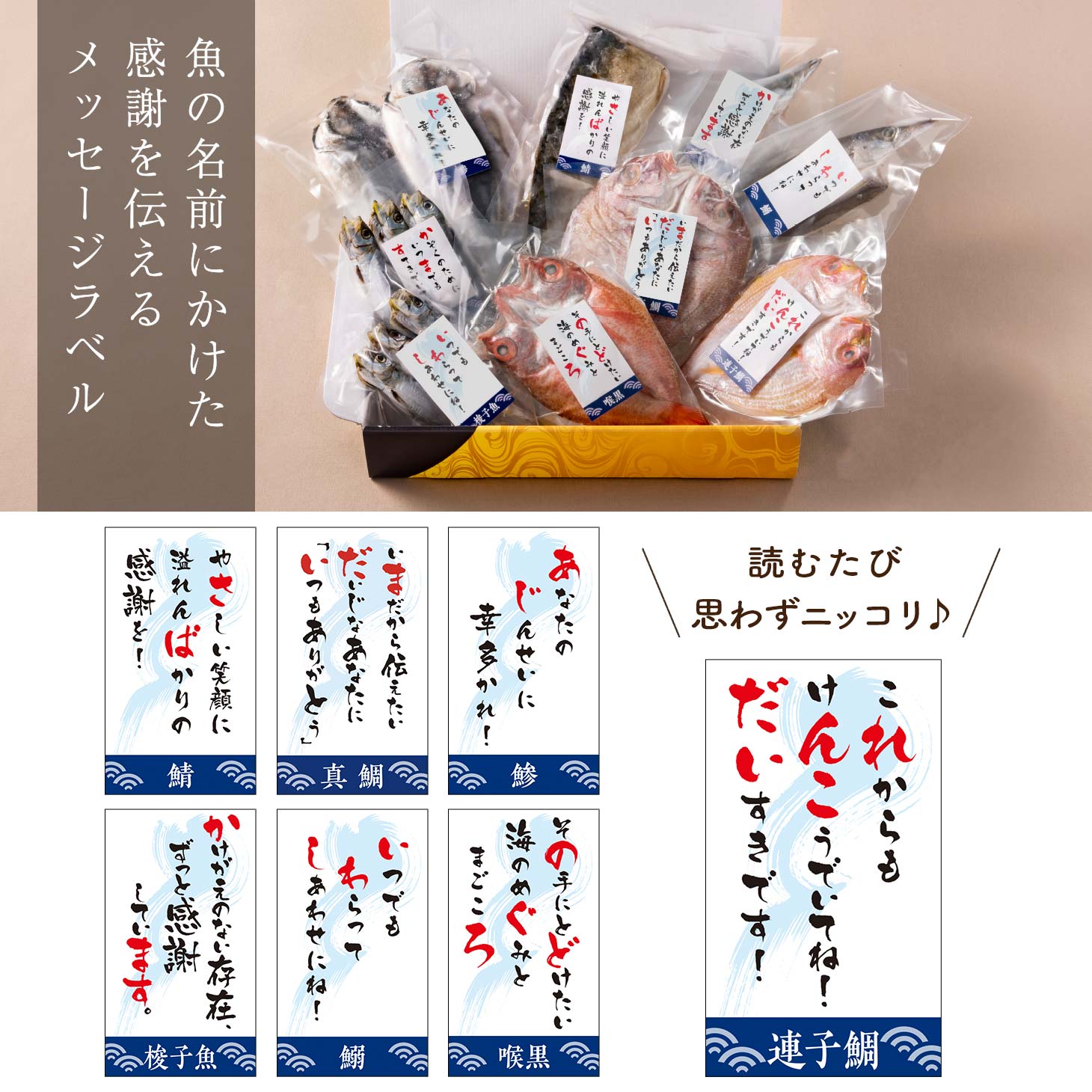 | メッセージラベル付き ギフト仕様 干物7点セット |
