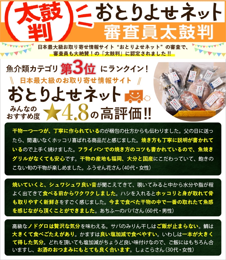 * 本商品には以下の展開がございます。 ・おつまみ一夜干しセット ・九州の一夜干しセット ・豪華一夜干し詰合せ |