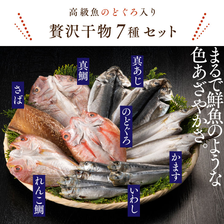 ギフト仕様【のどぐろ入り贅沢干物7種 セット】博多港 直送 お取り寄せ 魚 低温熟成 干物 高級 のどぐろ・れんこ鯛・真鯛・かます・鯖みりん干し・丸干しいわし《メッセージラベル付き》 ごはんに合う 詰め合わせ ギフト 冷凍 添加物不使用 無添