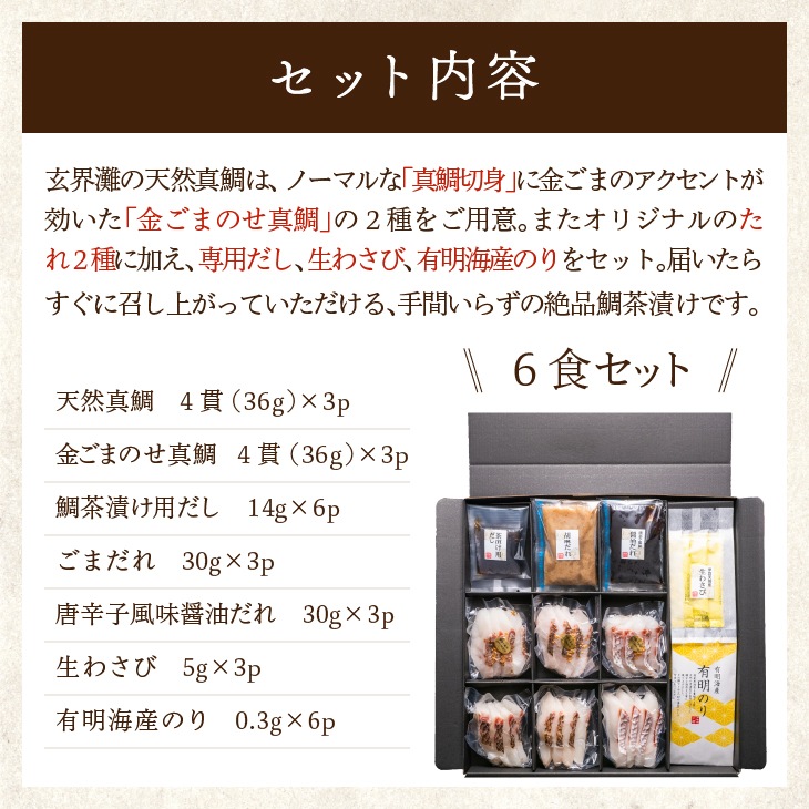 | 父の日限定仕様 玄界灘の天然真鯛 鯛茶漬け6食セット |
