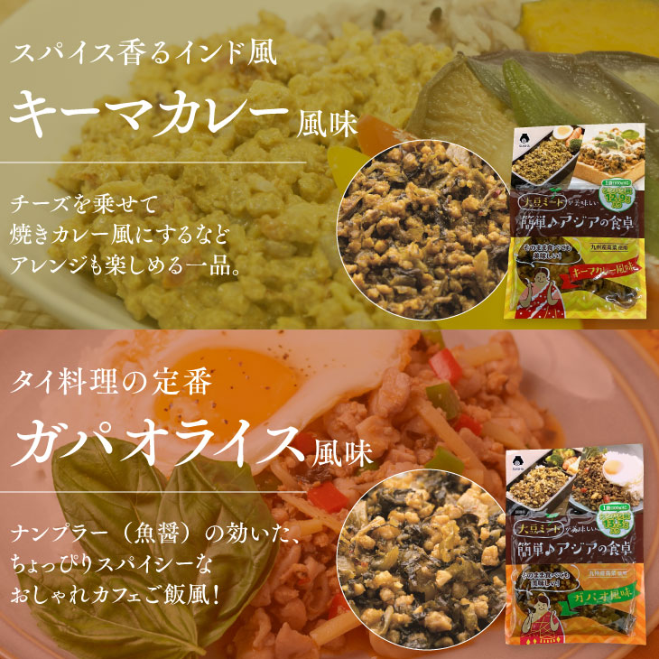 産地直送 「アジア風大豆ミートと切り干し大根サラダ 選べる2種」 九州 お取り寄せ 惣菜 健康 美容 大豆ミート タコライス キーマ ガパオ お弁当 お得 お試し 送料無料