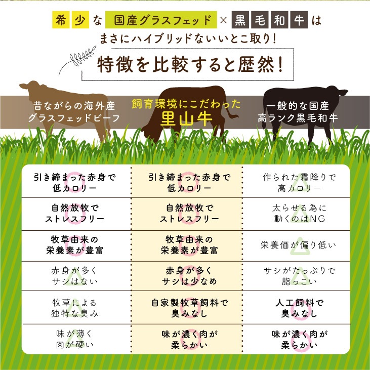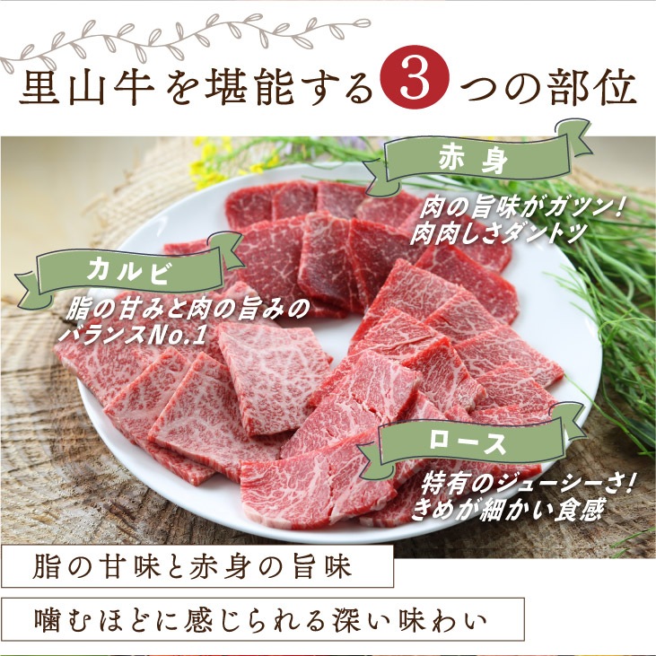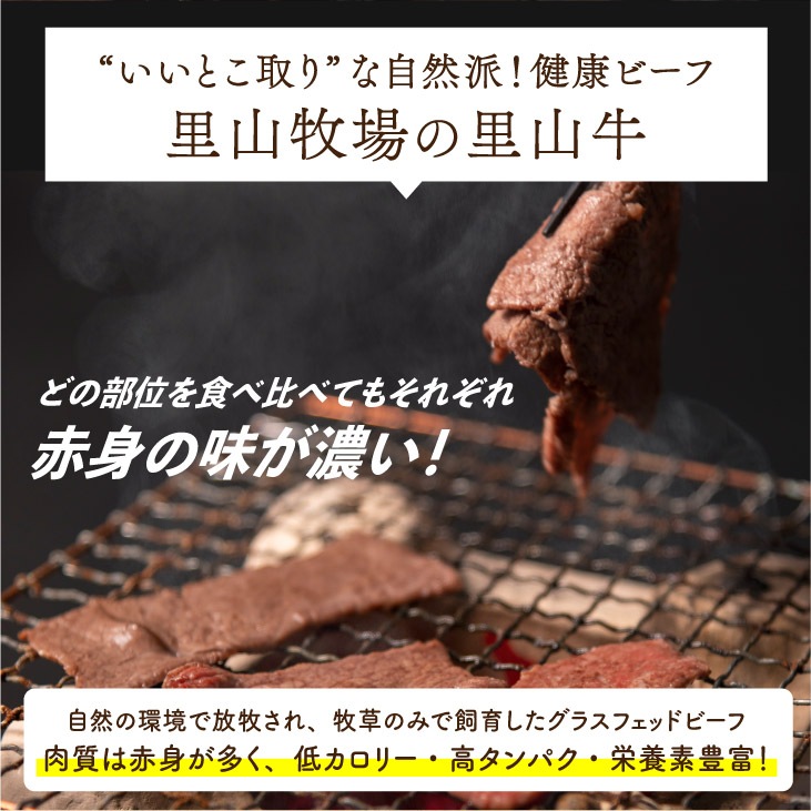産地直送 「里山牛 焼肉3種食べ比べ」九州 お取り寄せ 鹿児島 焼肉 ロース カルビ 赤身 健康 お土産 ギフト 贈答 贈り物 グラスフェッドビーフ 国産 黒毛和牛 BBQ キャンプ 送料無料