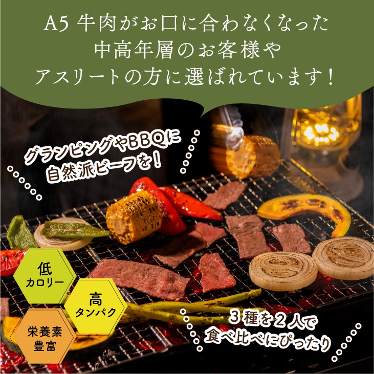 * 本商品には以下の展開がございます。 ・ステーキ・ハンバーグセット ・自然派焼肉三種セット ・別世界のステーキ食べ比べセット |