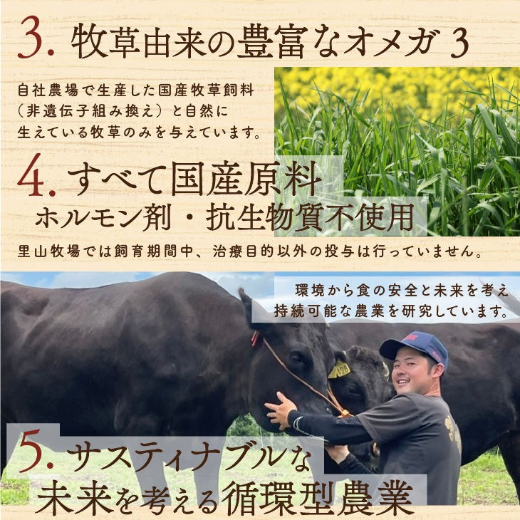 国産の自然派グラスフェッドビーフ・里山牛の脂の甘みと肉の旨みがバランスよく感じられる部位と、余分な脂がなく赤身の旨みが詰まった部位の焼肉セットです。 自然放牧による運動と牧草由来の豊富なオメガ3により筋肉と細胞膜と脂が良質化したお肉となっており、飼育環境も味わいも"別世界の黒毛和牛"と言われております。 肉質は余分な脂がないためくどくなく、赤身の旨みが詰まった噛むほどに味わい深いすっきりした味わいです。 里山牛の草食動物である牛本来の豊かでやさしい自然な味わいを、脂身から赤身までじっくりとご堪能ください。(※赤身肉の特徴として、火を入れすぎると肉が固くなってしまいます。火の入れ過ぎにはご注意ください。) 南日本新聞「翔べ和牛」で紹介されました! おうち焼肉、自分へのご褒美、贈答品などあらゆるシーンにおすすめです! ※カルビはスライサーを使用せずに、職人手切りでカットしてご用意します。 |