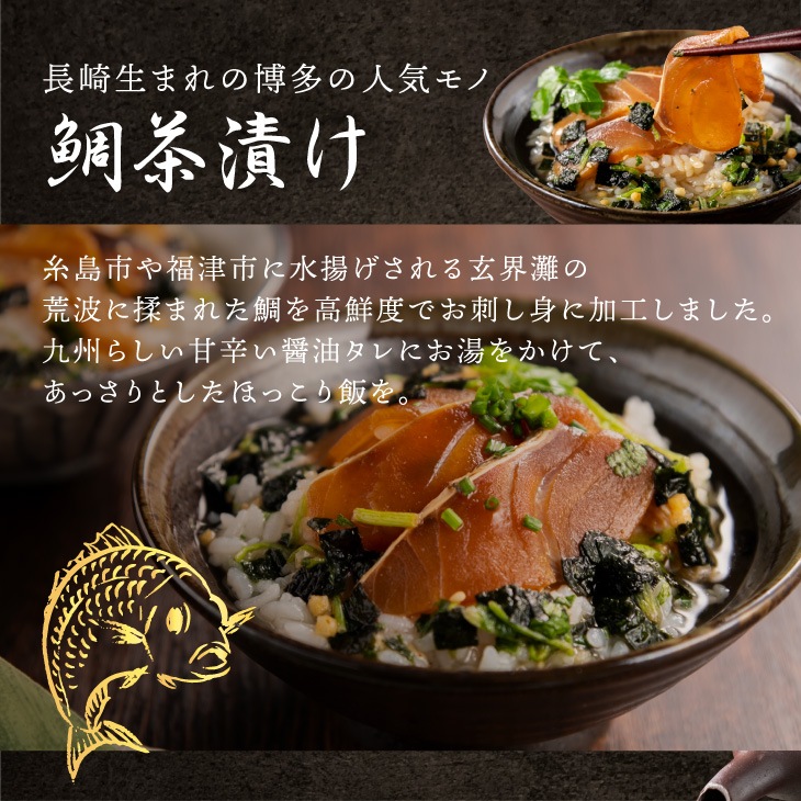 九州で水揚げされた鮮魚を加工した商品を中心に、九州で親しまれている定番商品をセットにした、九州の魅力を感じることの出来る海の幸の詰め合わせ7点セットです。 父の日限定仕様として気持ちを伝えるメッセージカード&父の日限定のしシールを付けてお届けします。 ≪いか丼の素≫ 甘みとコリコリとした食感が味わえる、玄界灘で採れた新鮮な剣先いかを使用しております。 いかとご飯に合う、甘みの利いた特製タレ付きでお楽しみいただけます。 ≪ごまさば≫ 長崎県産の新鮮な真さばを使用しており、添付のたれとごまを合わせて、博多の郷土料理である「ごまさば」がご自宅でお手軽にお楽しみ頂けます。 ≪のどぐろ一夜干し≫ 新鮮なのどぐろを手早くさばき、ひと塩をして、低温熟成の乾燥法で旨味を凝縮させた一夜干しです。濃厚な旨みが口中に広がります。 防腐剤・酸化防止剤・着色料・香料・化学調味料すべて不使用で、素材そのものをお楽しみいただける逸品です。 ≪れんこ鯛一夜干し≫ 福岡県産又は長崎県産のれんこ鯛を使用しております。水分が多い鯛の身を干すことで、凝縮された旨味をお楽しみいただけます。 防腐剤・酸化防止剤・着色料・香料・化学調味料すべて不使用で、素材そのものをお楽しみいただける逸品です。 ≪いわし明太≫ 程よく脂がのった真いわしの頭と内臓を取り除き、ピリッとした後味のバラコを腹の部分に詰めた、博多名物のいわし明太子です。 ≪たい茶漬け・さば茶漬け≫ 新鮮な天然の鮮魚を手早く切身に加工し、独自の茶漬けだれに絡ませて仕上げました。 あたたかいご飯にかけてお湯を注ぐだけでお召し上がり頂ける、生タイプの海鮮茶漬けです。 |