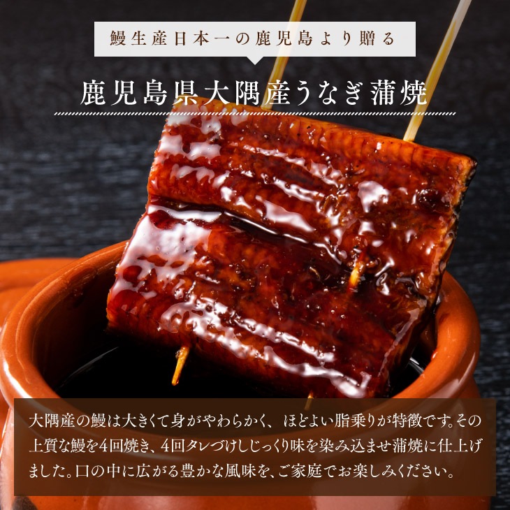 【鹿児島県大隅産 うなぎ蒲焼き 2尾 タレ・山椒付き】 日本 国産 鰻 ウナギ 蒲焼 土用丑の日 冷凍 お礼 御祝 お中元 父の日 贈り物 ギフト 御祝 贈答 大崎町 ご当地 グルメ 鹿児島県産 国産うなぎ タレ付き 送料無料 出店店舗別\鹿児島県\おおさき町鰻加工組合