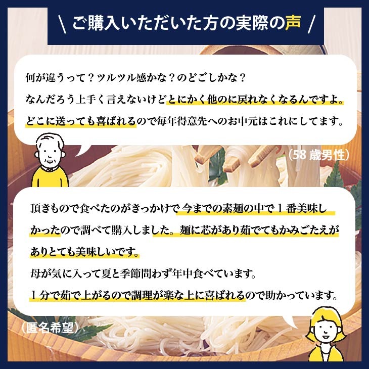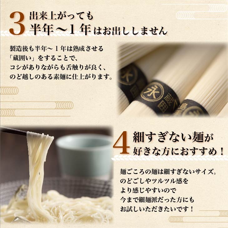 * 本商品には以下の展開がございます。 ・手延べそうめん 麺ごころ(紙箱) ・手延べそうめん 島原の細糸 ・手延べそうめん 島原小町 ・手延べうどん 鯛の奏で |