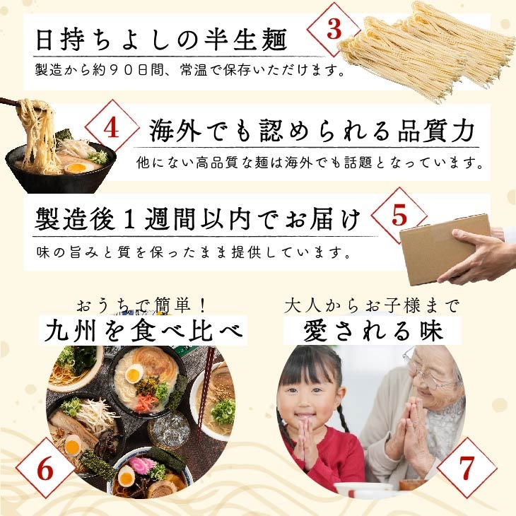 | 博多とんこつしょうゆ 久留米とんこつ 長浜とんこつ 熊本とんこつ 長崎あごだし 佐賀とんこつ(半生麺:6玉 液体スープ:6種) |